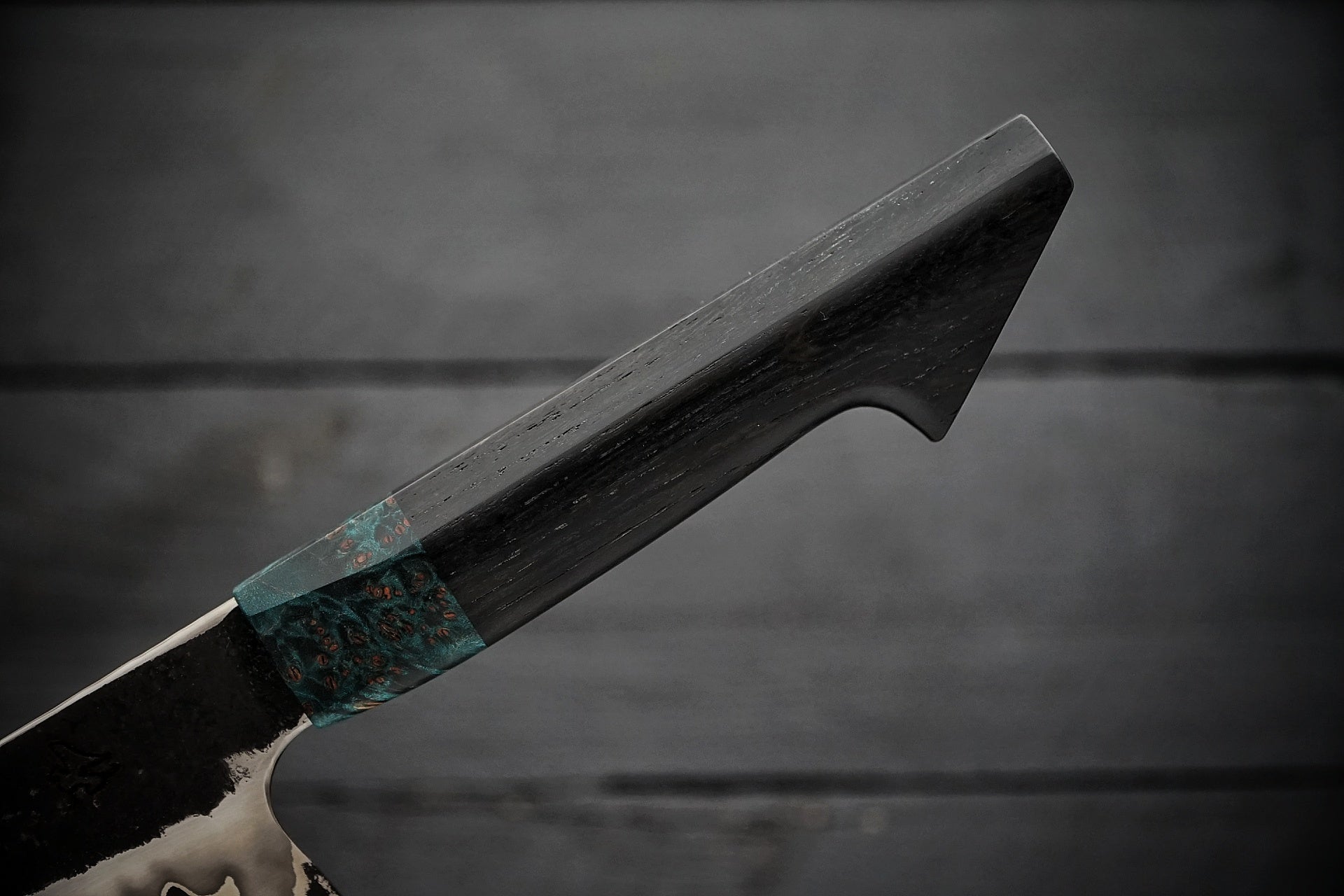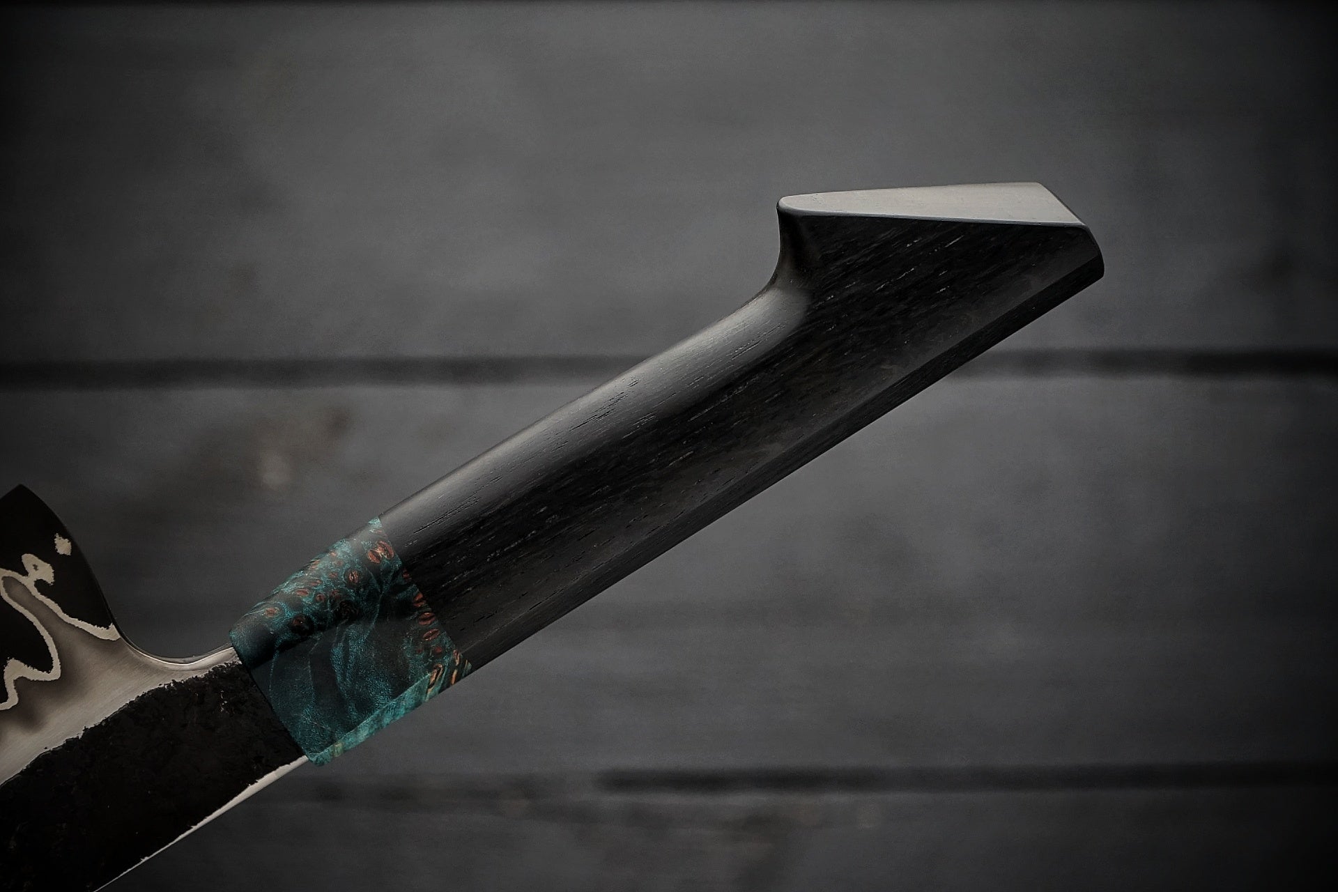 Handle: Dyed blue maple burl/Bog oak